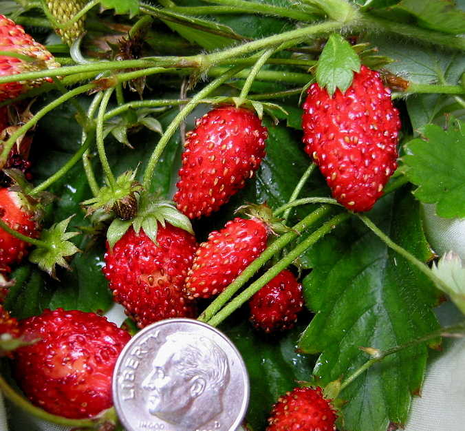 is very different. The plants do not produce runners; great for the herb garden or even in pots. Produce small very sweet berries throughout the summer. Prefer some shade. Plants live many years.