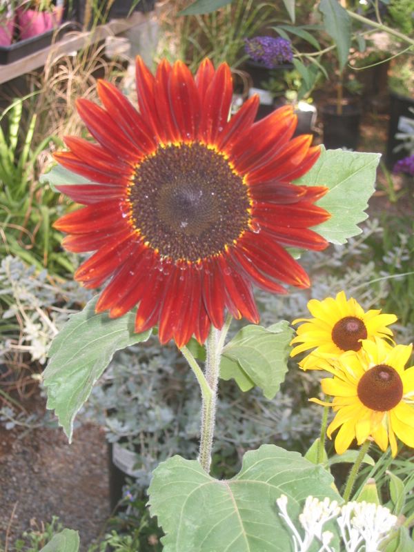 with many-branched stems topped with 3-inch sunflowers. There is a